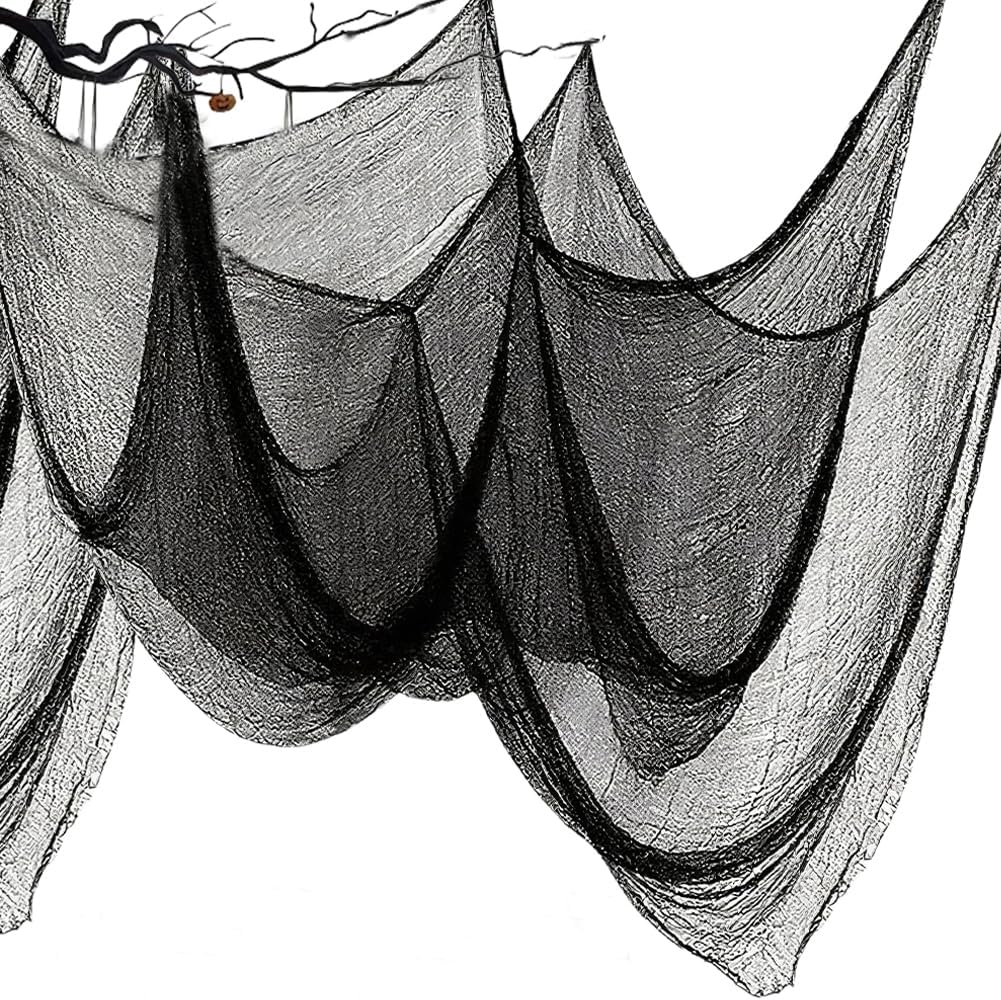 (Large Size 48 x 315 inch) Halloween Creepy Cloth - Spooky Giant Cheese Cloth Tapestry for Outdoor Yard Home Wall Decor Halloween Party Supplies & Decorations - Black